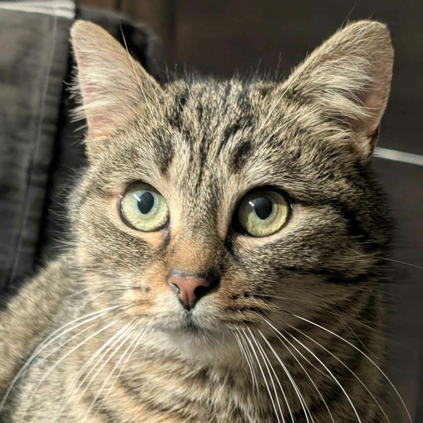 Boubouille est une chatte de 5 ans au regard perçant et à la personnalité affirmée. Très active, elle adore les séances de jeu et recherche le contact humain. Elle apprécie particulièrement les câlins, moments durant lesquels elle exprime son bonheur de façon très démonstrative.