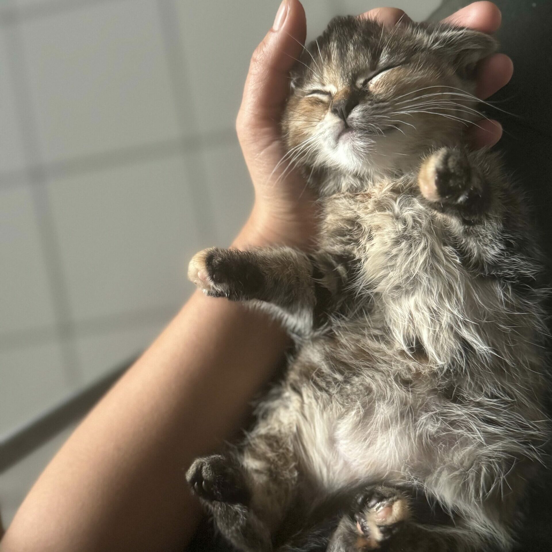 Depuis son arrivée dans sa famille d’accueil, elle se porte très bien. C’est le genre de chatonne à être un peu timide au début, mais une fois qu’elle vous fait confiance, c’est une féline pleine de vie qui s’amuse beaucoup à faire des bêtises !