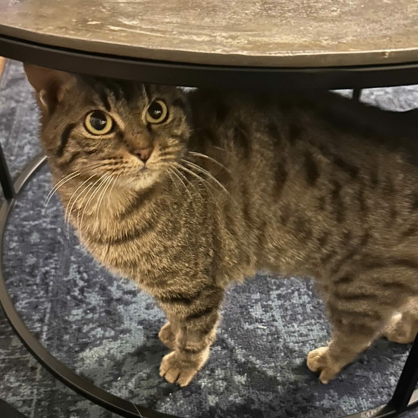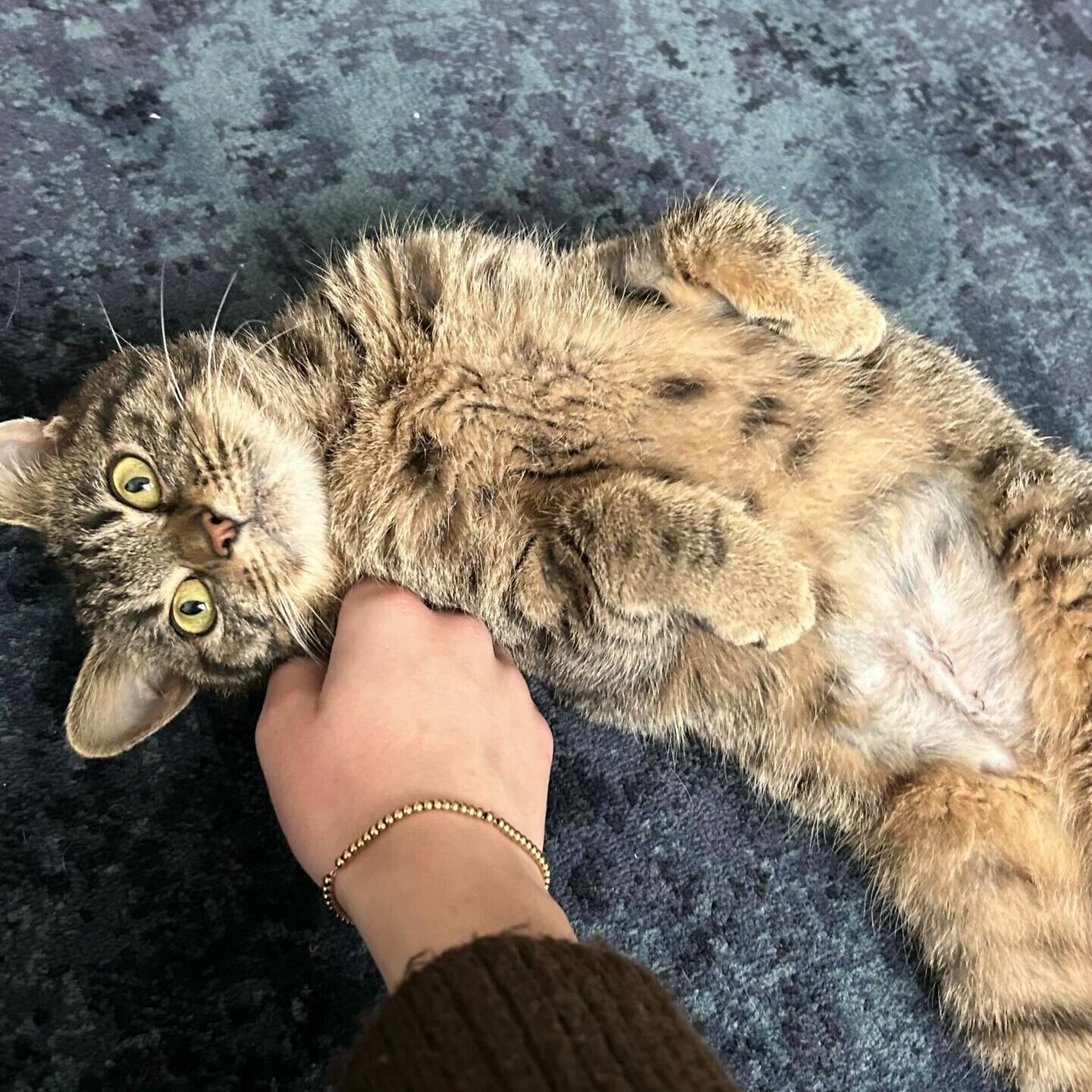 Evy est une jeune chatte de 2 ans au magnifique pelage brown tabby… et au caractère tendre et très attachant.