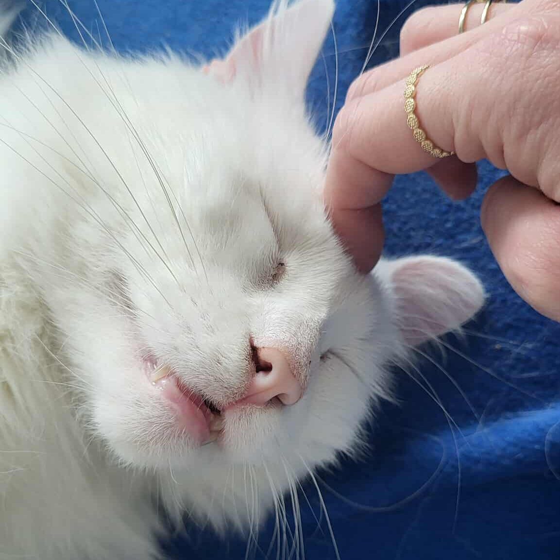 Bien que sourd, Flocon est étonnamment très bavard : il sait se faire comprendre avec talent lorsqu’il a faim, envie de câlins ou simplement besoin d’attention. Et justement… le moment de la pâtée est pour lui un véritable rituel sacré ! Grand gourmand, il ne cache jamais son enthousiasme à l’heure des repas.
