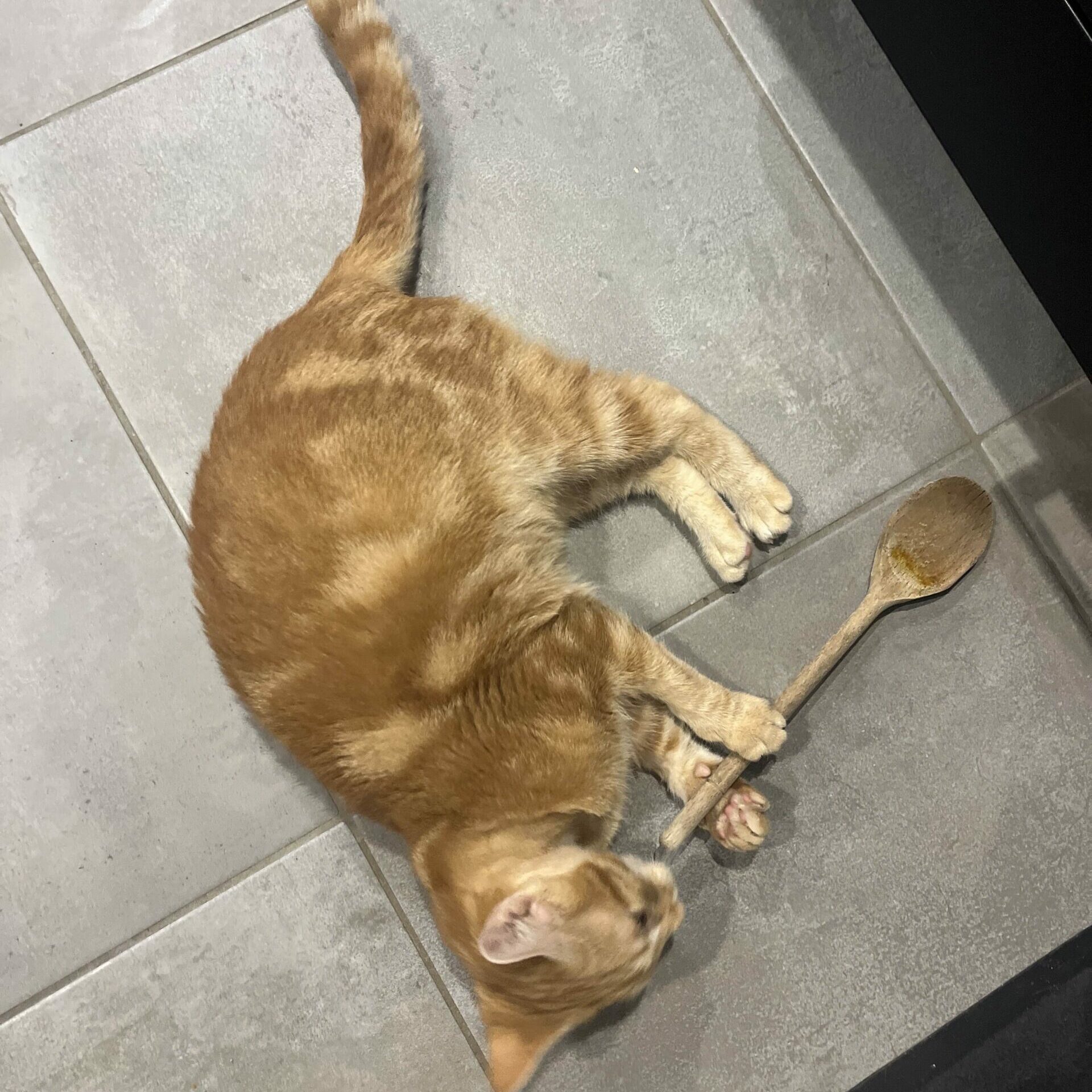 Petit Garfield, pour son appétit et son caractère bien affirmé.
